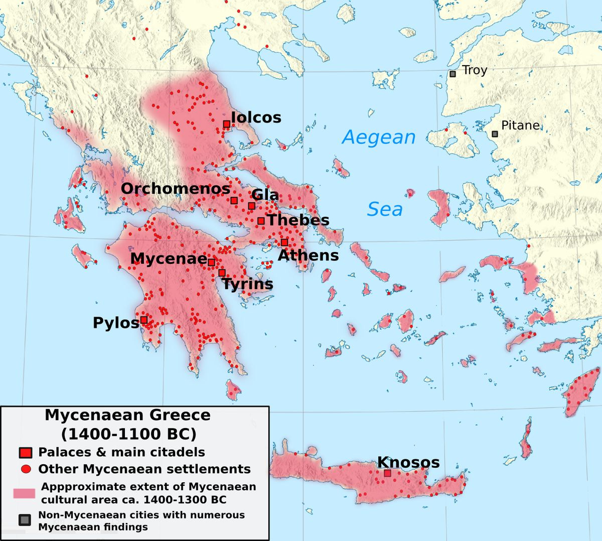 The Mycenaeans spoke Greek, an offshoot of the Indo-European language, and wrote using a script known as Linear B, adapted from the Minoans. Their society was built on palace-centered kingdoms on the Greek mainland, such as Mycenae, Argos, Pylos, Tiryns, Athens, Thebes, and what would later become Sparta. We have only palace records from this time, recording inventories of goods, animals, and people, but they indicate the existence of a warrior-aristocracy and a military elite.